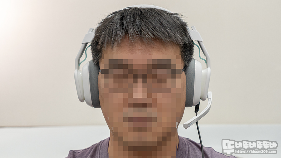 로지텍 ASTRO(아스트로) A10 GEN2 게이밍 헤드셋을 착용 모습을 살펴보면 필자는 안경 착용자로 안경다리 폭이 150mm로 모자 47 또는 48호 정도 되는 두상을 가지고 있습니다.