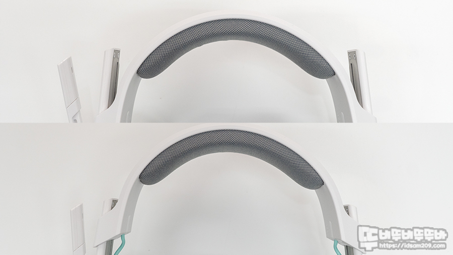 일반적인 사출 형태의 헤어밴드보다 유연한 소재를 사용하여 좌우 비틀림 이후에도 헤드셋 형태로 바로 복귀되는 것을 확인할 수 있었습니다.