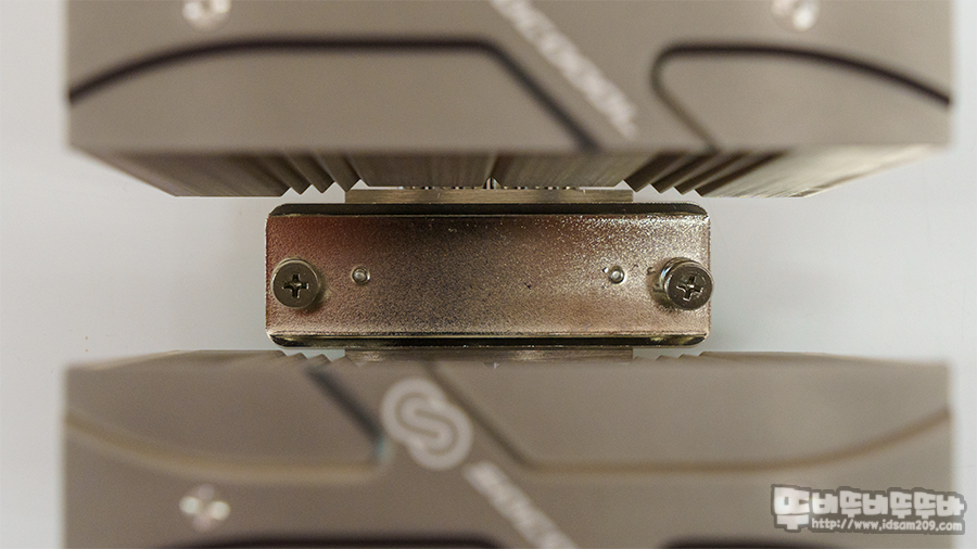 듀얼 타워 사이의 공간에는 CPU 결합 시 체결하게 되는 나사 모습을 확인할 수 있는데 쿨링팬이 없는 상태에서 CPU와 결합하고 맨 마지막 단계에서 쿨링팬을 결합하게 되니 참고하시기 바랍니다.