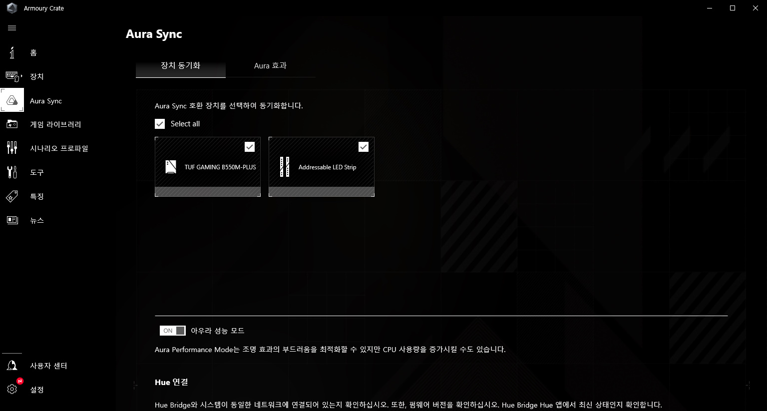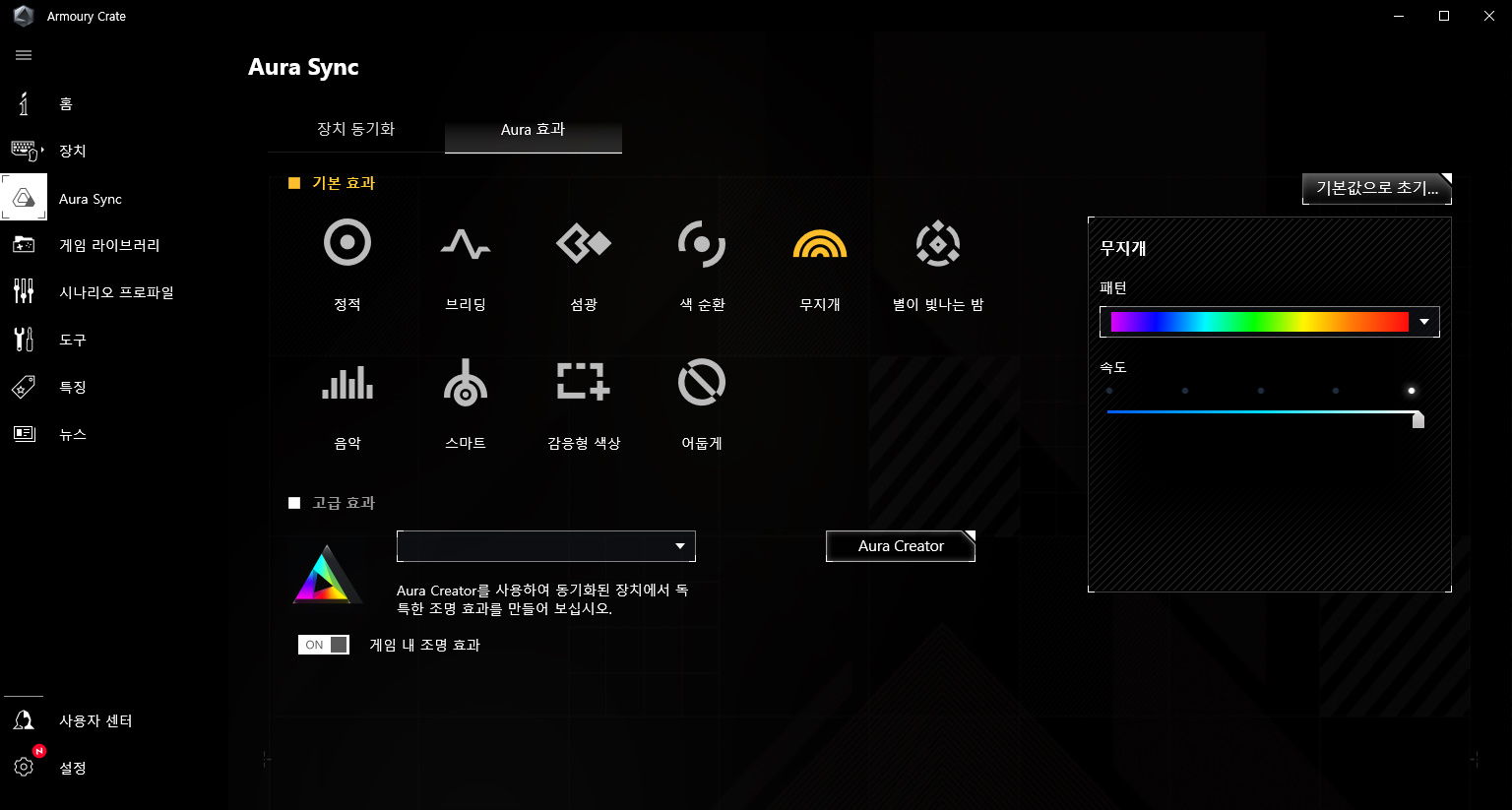 ASUS 메인보드를 사용하기에 ASUS Aura Sync를 통해 단색 LED 효과를 살펴보았습니다.