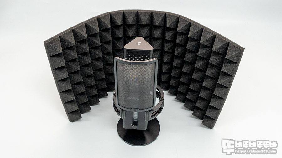 마이크를 사용하는 공간에 소리 반사로 인한 울림이 있는 경우 반사되는 소리를 흡수하는 용도로 사용되는 어쿠스틱 폼 패널은 스튜디오 급 녹음이 가능한 환경을 제공하는 특별한 아이템인데 엔드게임기어 XSTRM 하이엔드 게이밍 스트리머 마이크는 컴퓨터 본체 빼고 녹음에 필요한 모든 걸 다 주는 거 같습니다.
