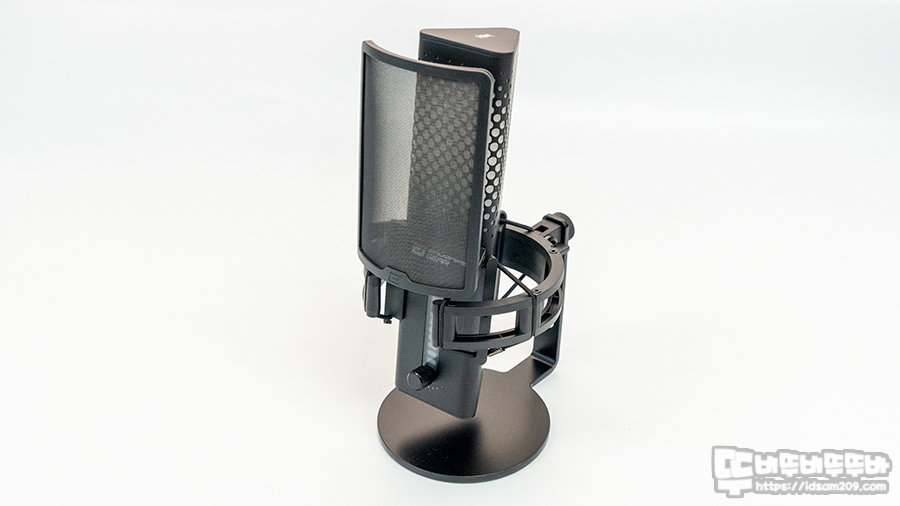 쇼크 마운트 결합된 엔드게임기어 XSTRM USB 마이크 모습.