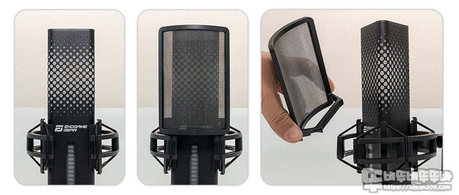 제품에서 가장 맘에 들었던 부분 중에 하나는 자석으로 탈부착되는 팝필터인데요. 메탈 소재가 사용된 마이크 하우징에 부착이 가능하기에 마이크와 일체감 있는 모습을 확인할 수 있습니다.
