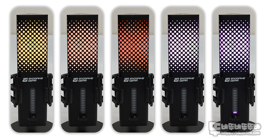 엔드게임기어 XSTRM USB 마이크는 모든 면에서 동일한 RGB 효과가 표현되는 모습.