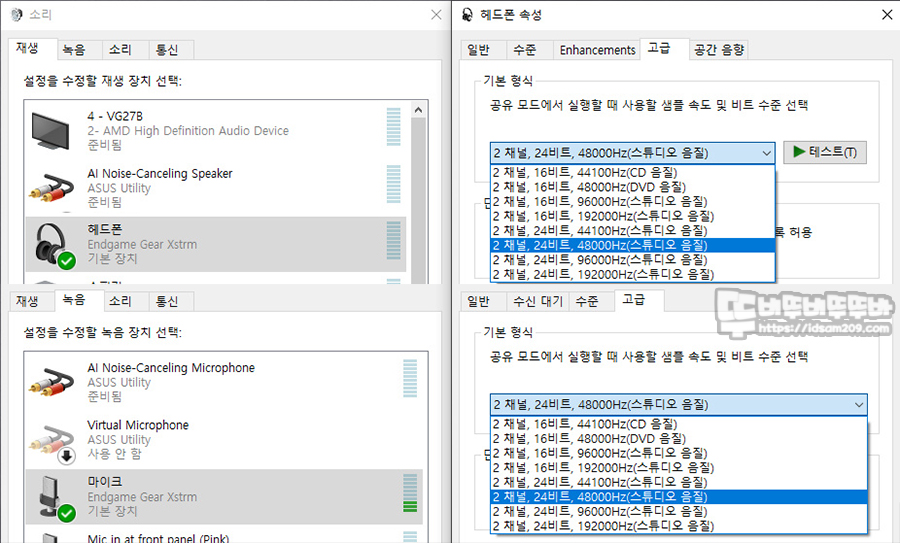 이번 테스트에서는 팝필터를 사용하지 않은 상태에서 진행하였으며, AI 노이즈 캔슬링 미사용과 사용을 구분하여 마이크 성능 알아보았습니다.