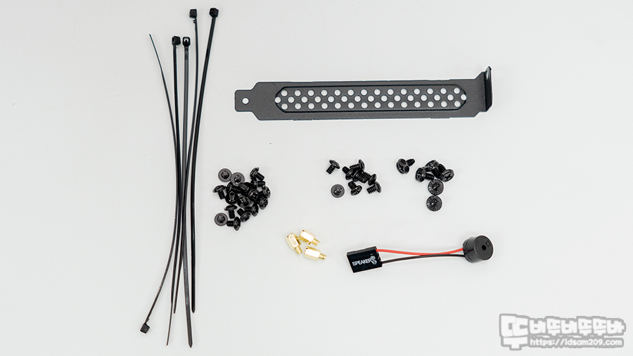 마이크로닉스 EM2-STEREO 케이스는 조립에 필요한 다양한 부자재를 제공하고 있으며 샤시 뒷면에 가이드와 하단 HDD 가이드는 HDD 또는 SSD를 조합으로 다양한 저장 장치 구성이 가능합니다.