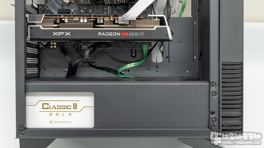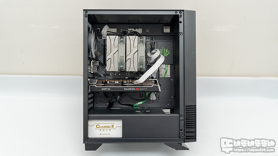 M-ATX 메인보드와 타워형 CPU 쿨러를 장착했지만 전체적으로 공간적인 여유가 있는 편이고요.