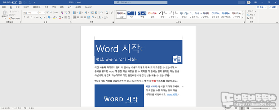 Office Home and Business 2021에는 오피스 / 워드 / 파워포인트의 공통 사항이 자동 저장 기능과 공유 기능을 살펴보면 자동 저장 시 OneDrive를 통한 저장이 가능하며, 공유 기능을 이용 시 협업 또는 업무 공유자에게 작성된 파일을 공유도 가능한데요.