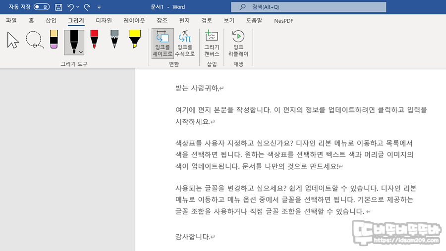 엑셀, 파워포인트, 워드에 공통으로 사용 가능한 그리기 기능도 확인할 수 있었습니다.