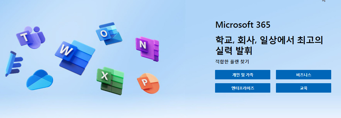 MS Office의 경우도 365 시리즈를 통해 개인, 비즈니스, 엔터프라이즈, 교육 등으로 세분화된 월 정액 서비스를 제공 있는데요.