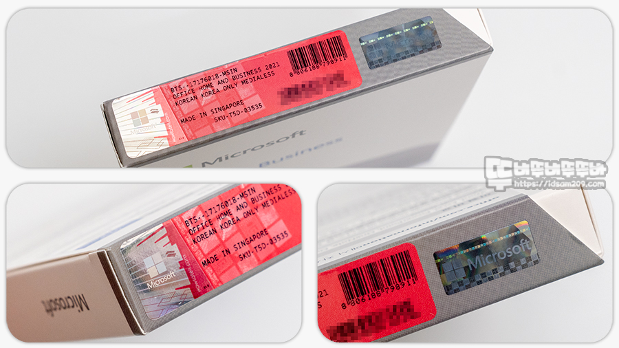Office Home and Business 2021 패키지는 기본 비닐 실링 처리가 되어있으며 비닐 표면에 정품 스티커가 부착되어 있습니다. 비닐을 뜯으면 저거 없어진다는....