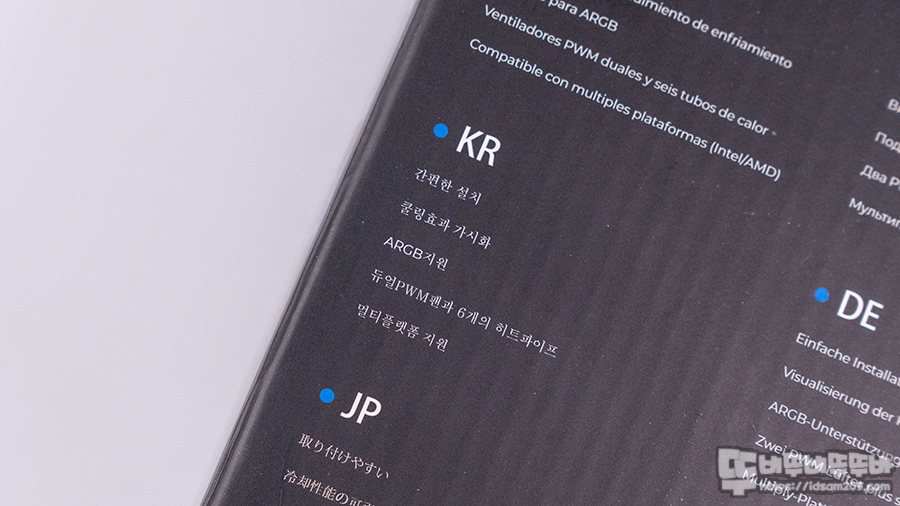 투명 블리스터에 담긴 CPU 쿨러와 종이를 이용한 케이블 분리 등의 일반적인 CPU 쿨러에서 볼 수 없는 고급스러움이 느껴집니다.