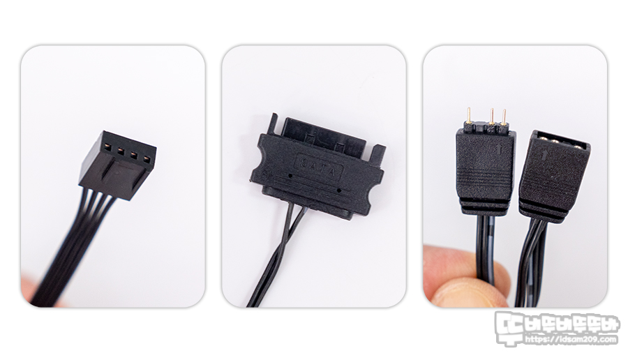 ALSEYE M120D PLUS CPU 쿨러는 PWM CPU 팬 커넥터, SATA LED 전원 커넥터, Addressable RGB (+5V) 커넥터 3가지로 구성되어 있는데 SATA 전원 연결로 AUTO RGB LED 효과와 온도계 디스플레이 전원 공급을 하게 되며 메인보드 싱크를 위해서는 +5V ARGB 커넥터 연결이 필요하니 필요에 따라 연결하시기 바랍니다.