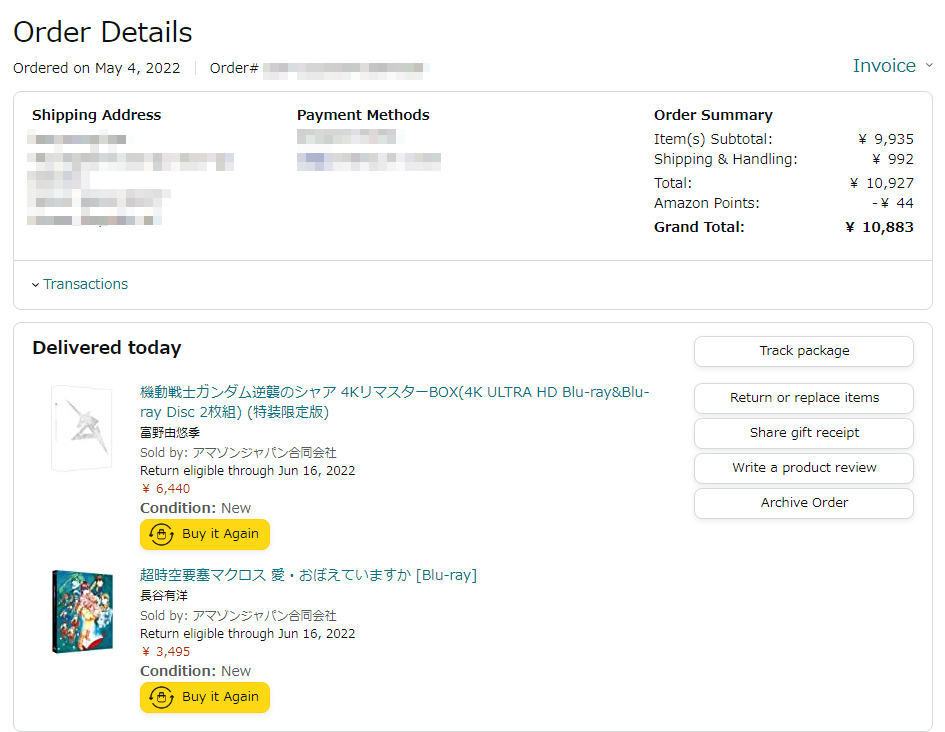 TV도 바꿨겠다 4K 영상 소스를 찾다가 일마존에 " 마크로스 사랑 기억하고 있습니까? " 극장판 블루레이가 판매되는 것을 확인하고 겸사겸사 " 건담 샤아의 역습 4K " 블루레이를 주문했습니다.