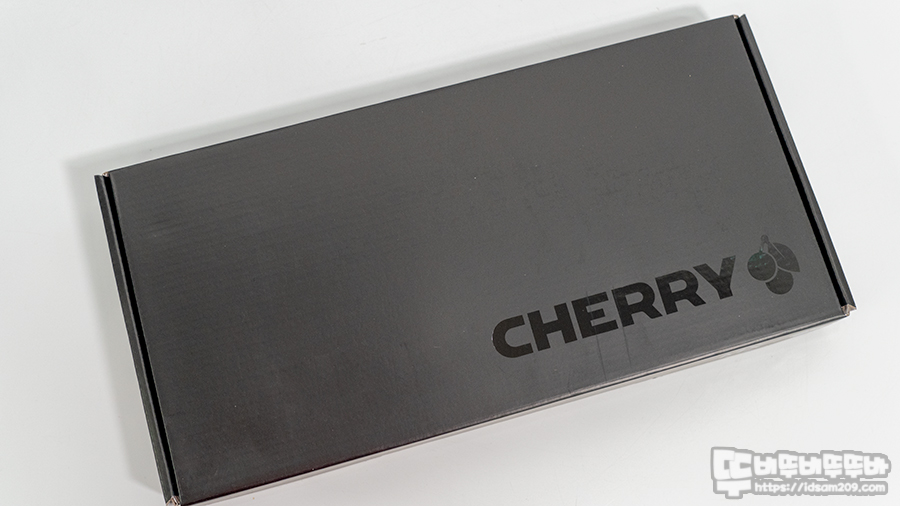 패키지는 보통의 체리 키보드들과 같은 블랙 컬러에 유광으로 표현되는 체리 로고와 측면에 라벨을 통해 제품의 기본적인 정보를 제공하고 있습니다.