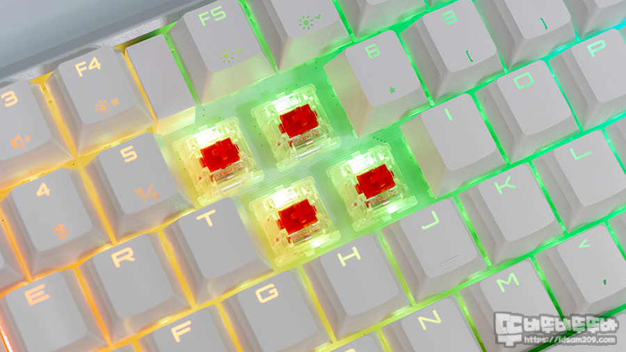 영상에서는 빠졌지만 단색 컬러로 표현되는 LED 효과의 경우 Fn + Space 키를 이용하여 팔레트 호출로 눈에 보이는 컬러를 선택하여 빠르게 컬러 변경이 가능하니 참고하시기 바랍니다.