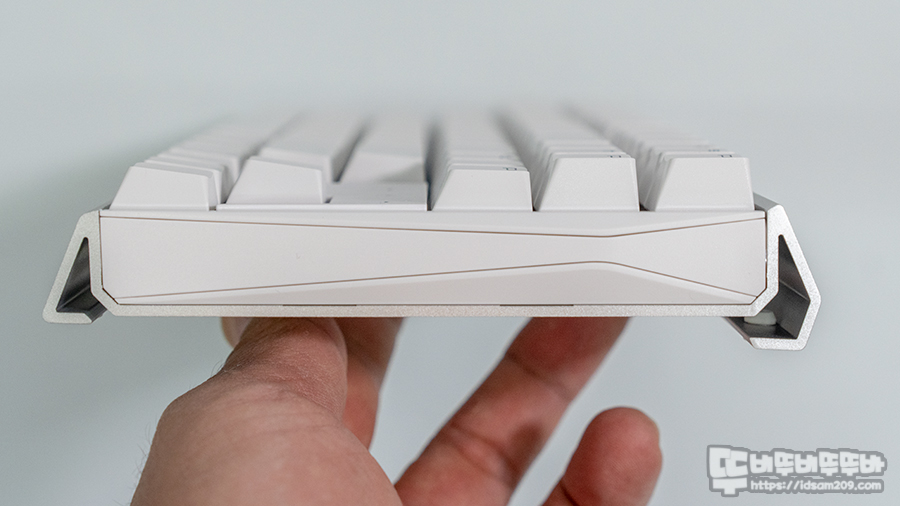 이전 제품과 비교 시 추가로 변화된 부분이 있다면 키보드의 알루미늄 하우징 하판의 높이 조절 다리 연결 방식인데요.