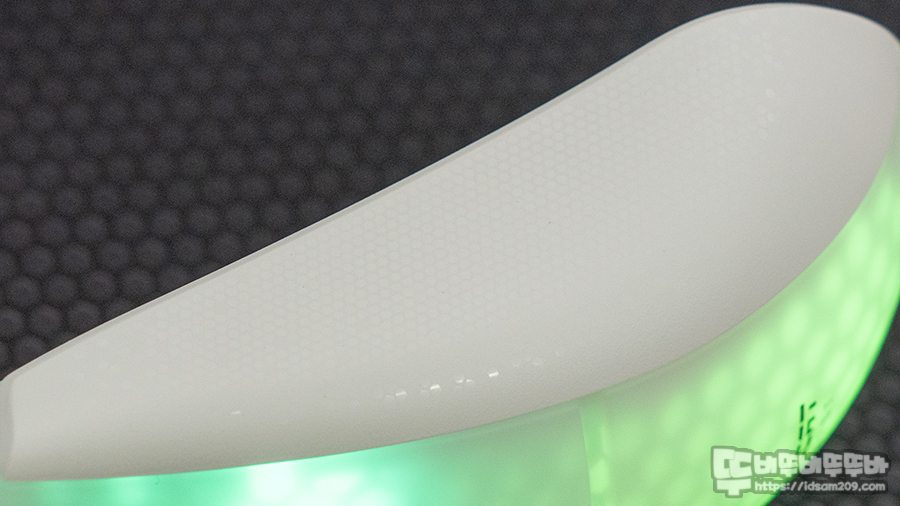 방수 및 방진을 지원하는 바이오닉 쉘 디자인이 오염을 최소화한다고 하는데 마우스 상단 표면이 러버코팅은 아니지만 약간 뽀송뽀송한 촉감을 전해주는데 손이 건조하신 분들은 조금 미끄러울 수 있을 거 같네요.