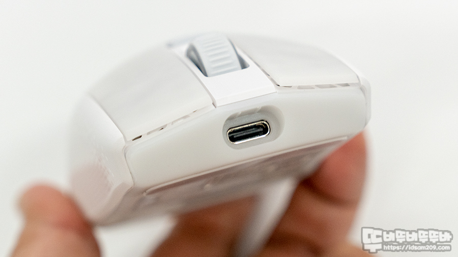 평소 사용하는 마우스 하우징 끝부분이 손바닥 끝에 닿는 클로우 그립으로 사용 시 사이드의 뒤로 가기 버튼 사용이 불편해서 사이드 버튼 중간에 엄지손가락이 위치하는 핑거 그립으로 사용해야 마우스 버튼을 밸런스 있게 사용할 수 있었습니다.