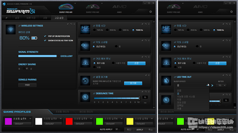 슬립모드 진입 시간과 그에 따른 LED 효과를 설정하는 기능으로 무선에 필요한 기능인데 왜 유선 연결에서 나타나는 부분이 아리송합니다.