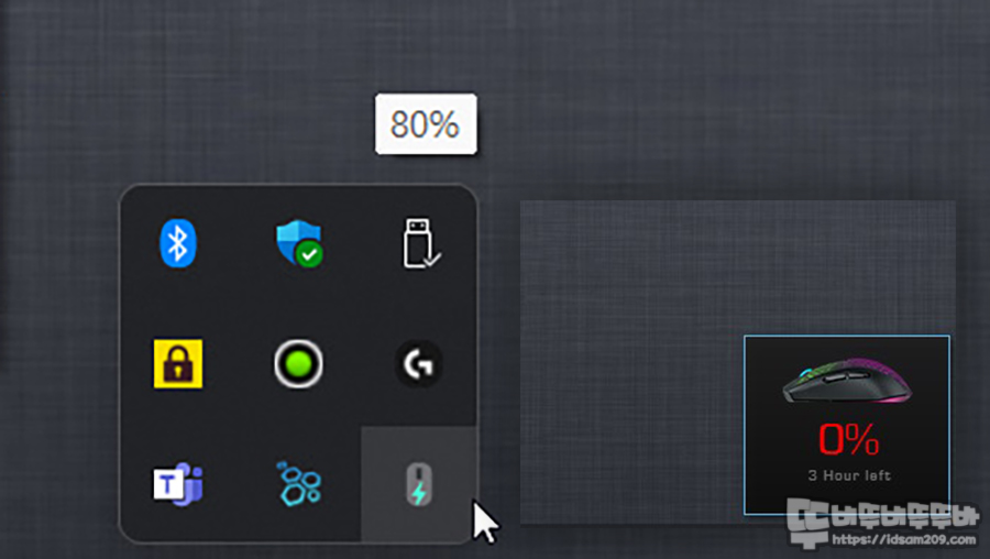 소프트웨어의 배터리 정보에서 "팝업 알림" 및 "상태 표시 아이콘" 기능을 모두 활성화해야 충전 진행 및 사용 중 배터리 상태에 대하여 윈도우즈 하단의 아이콘을 통해서 확인할 수 있었습니다.