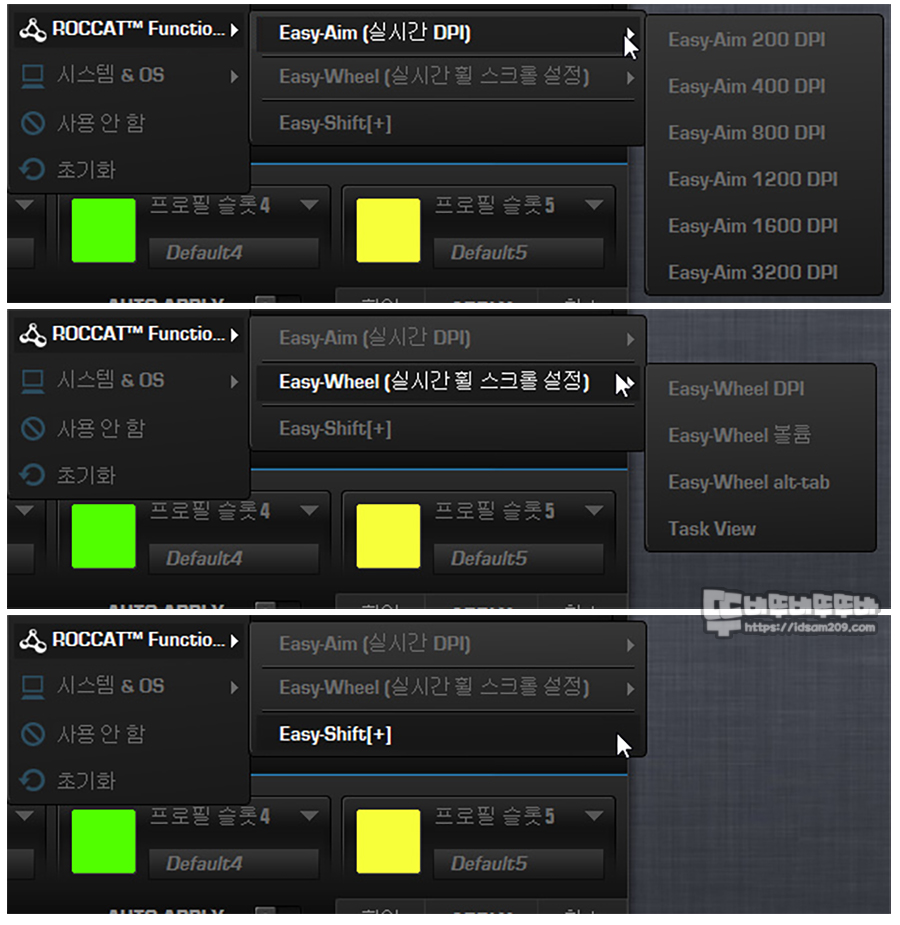 문제는 Easy-Shift 키를 누른 상태에서 다른 키를 동시에 눌러야 하기에 마우스 무빙이 심한 FPS 게임에서 사용하기 위해서는 많은 노력이 필요하니 꼭 필요한 기능 위주로 활용하시기 바랍니다.