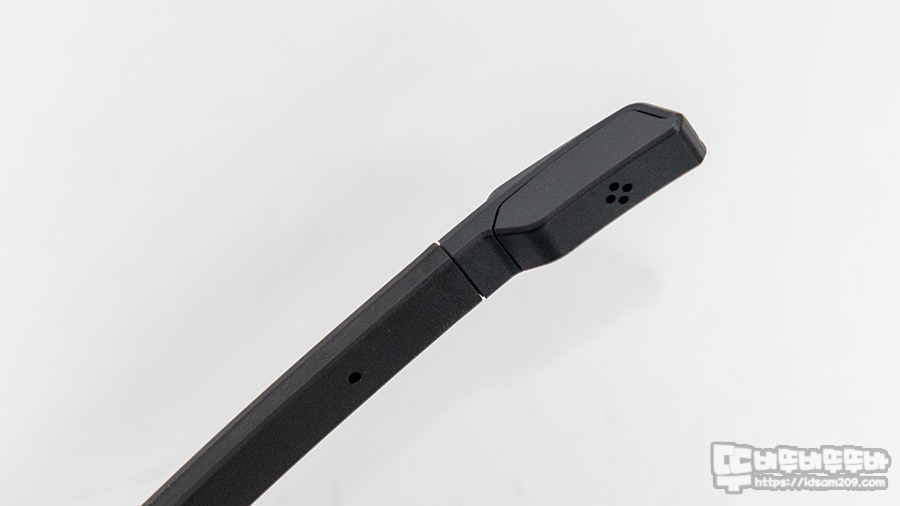 폴딩 방식의 마이크는 약 130mm로 적당한 편이며 붐 마이크 중간은 실리콘 재질이 사용되어 어느 정도 구부림이 가능하지만 딱 고정되는 맛은 없는 편입니다.