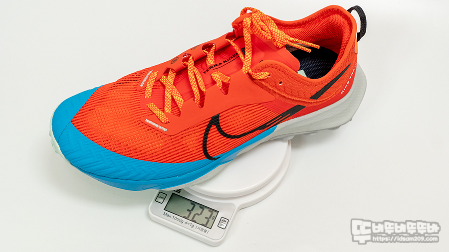 나이키 에어 줌 테라 카이거 8은 약 323g 무게로 테라 카이거 6 (301g)에 비해서 소폭 무게가 증가하였습니다.