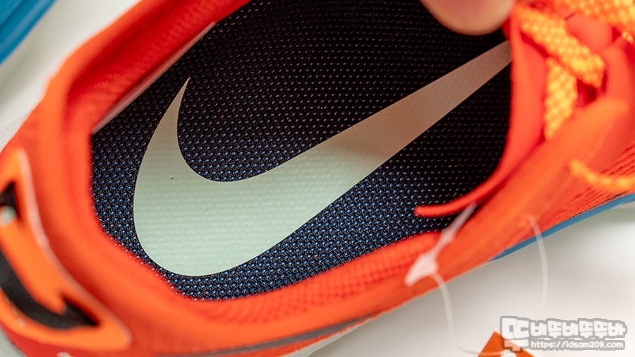 신발의 바깥 부분은 검정색 라인으로 표현하는 Nike 로고를 안쪽에는 트레일로 로고 그리고 뒷부분에 흰색으로 표현되는 Nike로고 모습을 확인할 수 있는데 대칭형 느낌의 로고가 아니어서 살짝 아쉬운 감이 있네요.