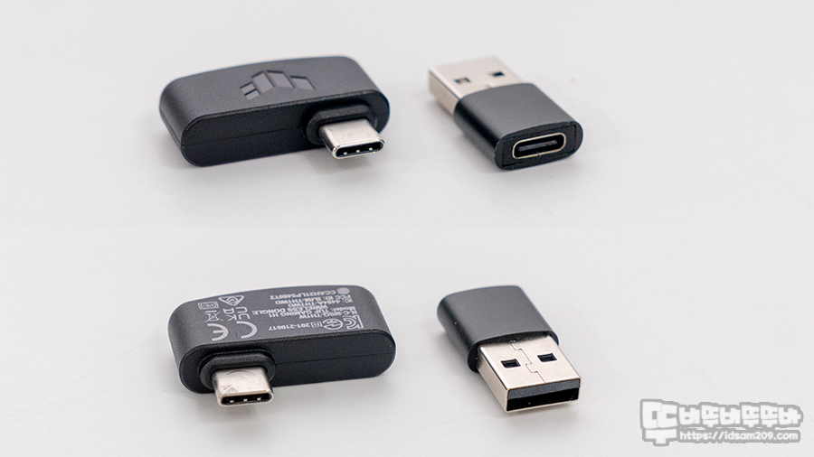 제품의 2.4GHz 무선 리시버는 USB-C 단자를 기본으로 하고 있어 최신 스마트 기기 또는 콘솔 게임기에서 사용이 가능하지만 USB-C to A 변환 아답터를 제공하고 있어 일반 PC에서도 사용이 가능하여 멀티 플랫폼에서 활용이 가능한 게 특징입니다.