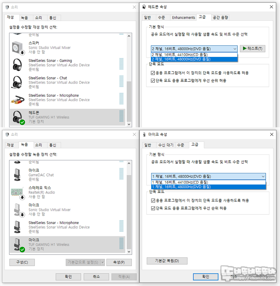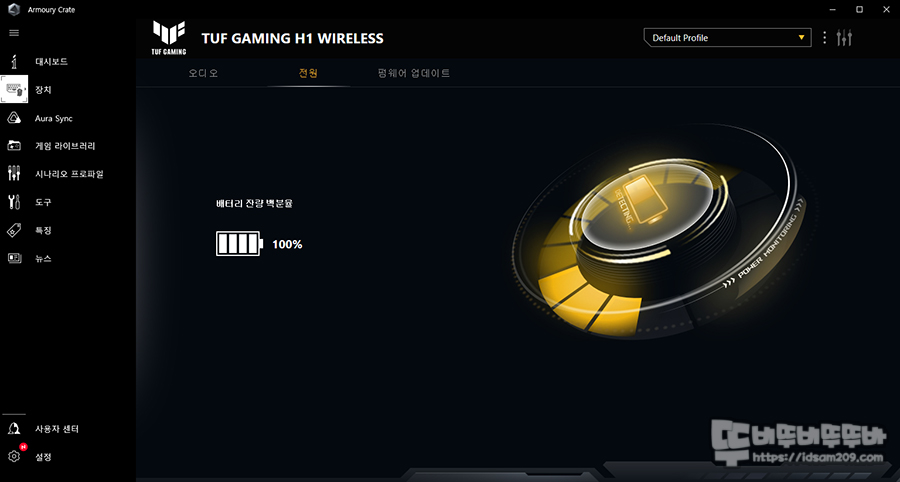 ASUS 제품에서 필수적으로 사용하게 되는 Armorary Crate - 장치 - TUF GAMING H1 WIRELESS 선택하면 사운드 관련 설정이 가능한데요.