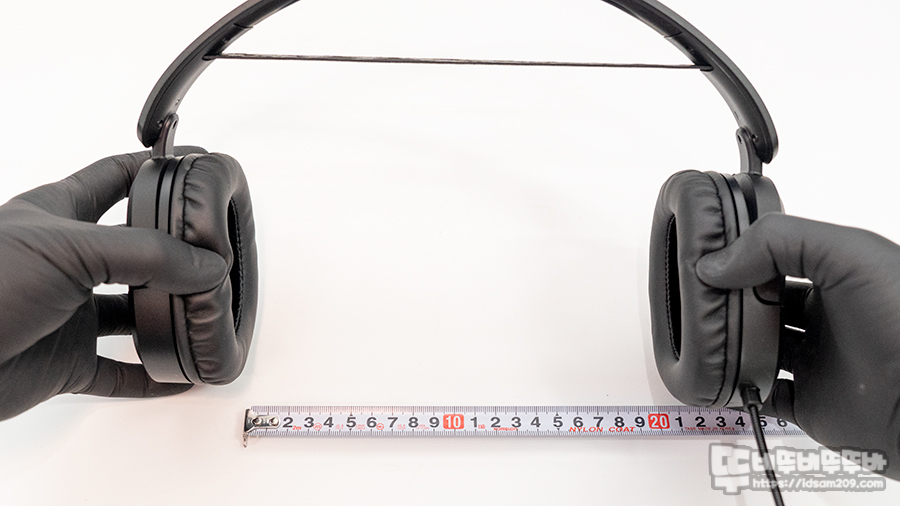 이어패드를 11자로 유지한 상태에서 최대로 늘려보면 약 20cm, 둘레 기준으로 약 62호 사이즈까지 여유롭게 착용이 가능하니 참고하시기 바랍니다.