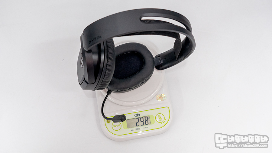 ASUS TUF H1 유선 헤드셋 무게가 287g 임을 감안하면 900mAh 리튬 폴리머 배터리 및 무선 기능 기판을 내장하고 298g 무게를 가지고 있다는 것은 상당히 경량형에 최적화된 제품임을 확인할 수 있습니다.