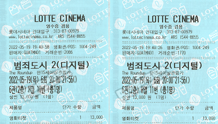 장소 : 롯데시네마 건대입구 6관(레이저) H열 10, 11번