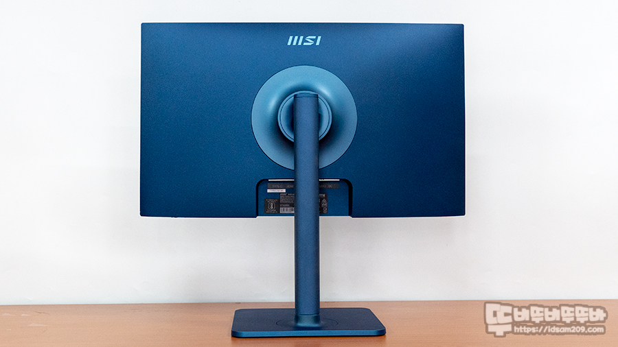 모니터 뒷면에 원형으로 보이는 중앙 스탠드 부분은 조금 밝은 톤의 블루 컬러가 사용되어 투톤 느낌을 주는데요.