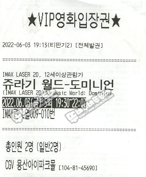 장소 : CGV 용산아이파크몰 IMAX관 L열 9,10번