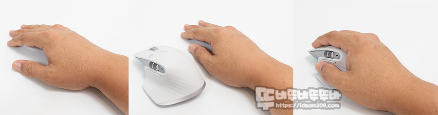 인체공학 그립을 지원하는 MX Master 3S 360도 뷰 모습.
