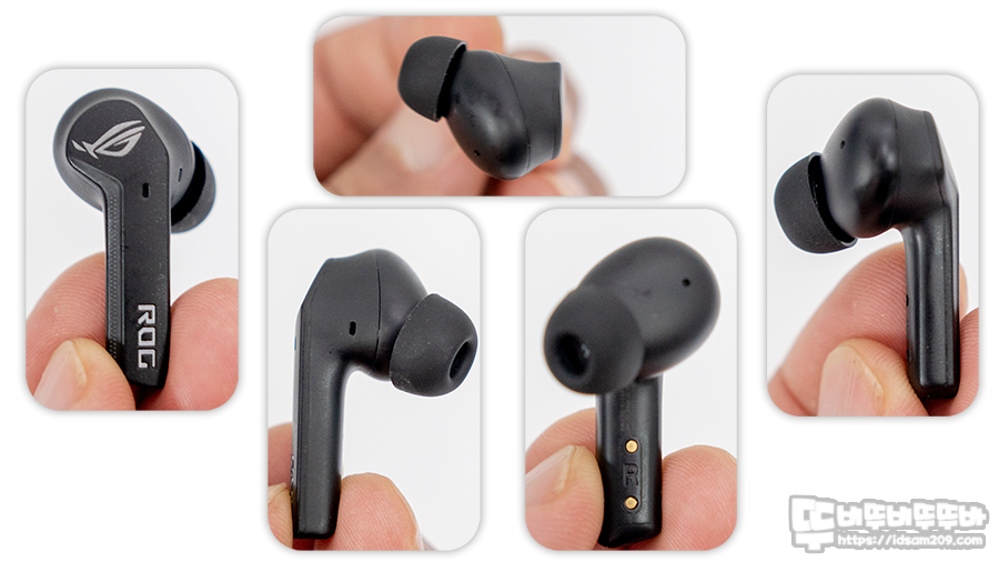 개인적으로 무선 이어버드는 외형적으로 투박한 느낌이지만 착용감은 좋은 편이며 터치센서가 있는 하우징의 ROG 로고 부분이 평면이 아닌 살짝 꺾여있는 디자인이라 손가락으로 터치 시 살짝 위치를 찾아야 하는 불편함이 있네요.
