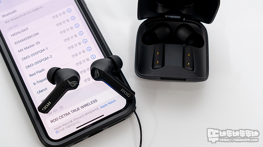 이때 스마트폰의 블루투스 기기 리스트에서 "ROG CETRA TRUE WIRELESS"를 선택하며 페어링이 완료됩니다.