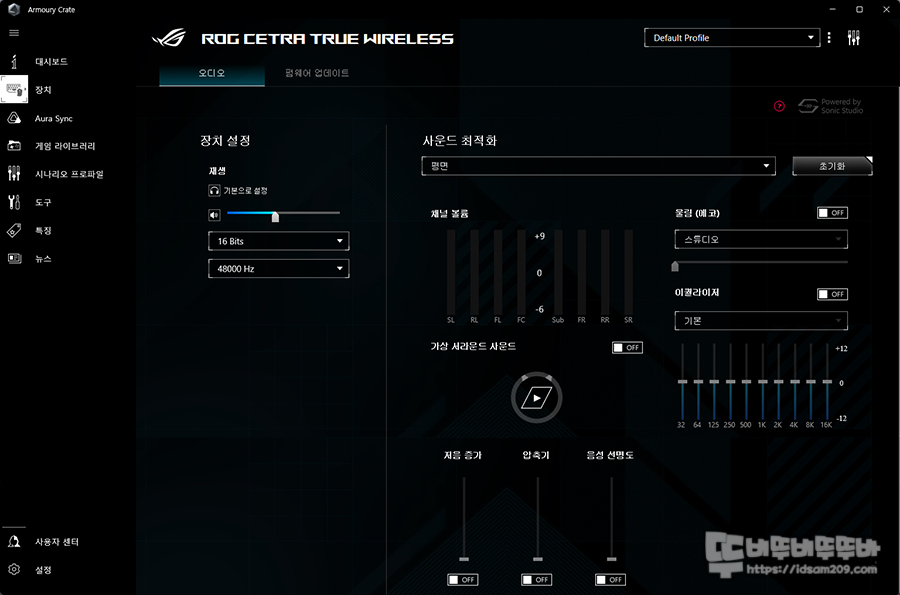 Armoury Create PC 앱을 이용 시 모바일과 동일한 사운드 최적화, 이퀄라이저 기능 및 가상 7.1 채널 사용도 가능합니다.