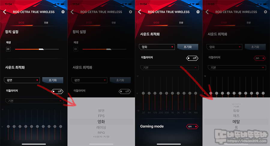앱 스토어에서 다운 받을 수 있는 Armoury Create은 심플한 구성으로 지정된 사운드 최적화 기능과 사용자가 선택할 수 있는 이퀄라이저 기능을 제공하며 저지연 모드인 Gaming Mode On/Off를 선택할 수 있습니다.
