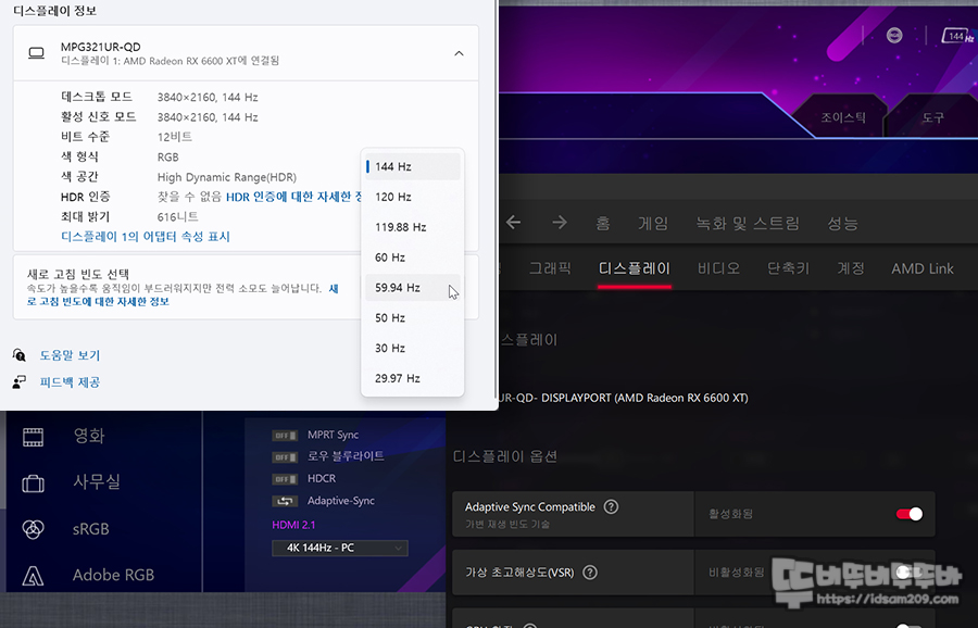 ▶ 어댑티브 싱크 / 144Hz 주사율 지원