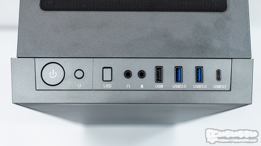 전원 스위치 / 리셋 스위치 / LED 라이팅 스위치 / HD AUDIO / USB 2.0 / USB 3.0 포트 2개 / USB-C 포트로 알차게 구성되어 편리하게 사용할 수 있는 편입니다.