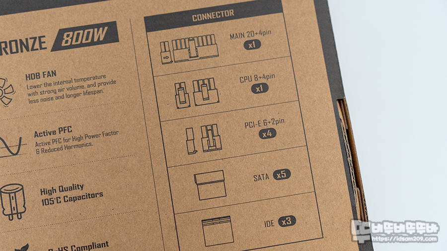 효율 인증을 표현하는 ETA는 브론즈 등급 그리고 소음 인증을 표현하는 LAMBDA는 스탠다드 + 등급을 받아 6만 원대 판매하는 800W 파워서플라이로는 나름 가성비 제품으로 리뷰를 통해 자세히 살펴보도록 하겠습니다.