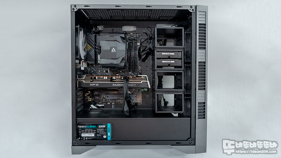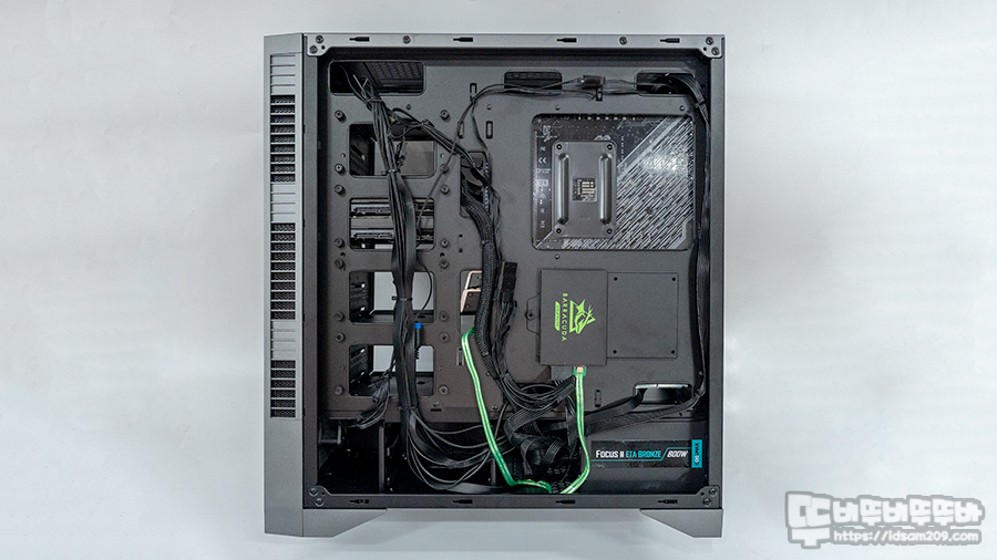 먼저 케이스 리뷰 때 사용했던 마이크로닉스 Classic II 850W 80PLUS GOLD 풀 모듈러 파워서플라이와 비교 시 케이블의 길이가 살짝 짧은 느낌이 있으며 그 외에는 시스템 조립에 불편함은 없는 편입니다.