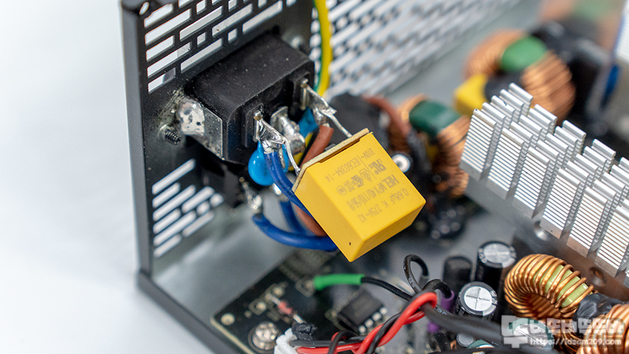전자파 노이즈 제거 및 안정적인 전류 공급을 담당하는 EMI 필터 모습.