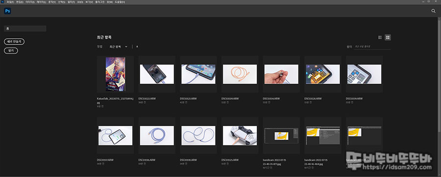 최신 버전의 포토샵의 경우 위의 사진과 같은 썸네일 방식의 파일 열기 방식을 사용합니다.