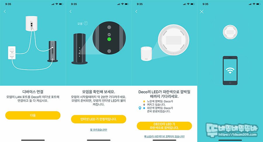 화면에서 알려주는 내용을 따라 진행하다 보면 모든 네트워크 설치가 완료되면서 녹색 LED가 점등되어 사용이 가능해집니다.