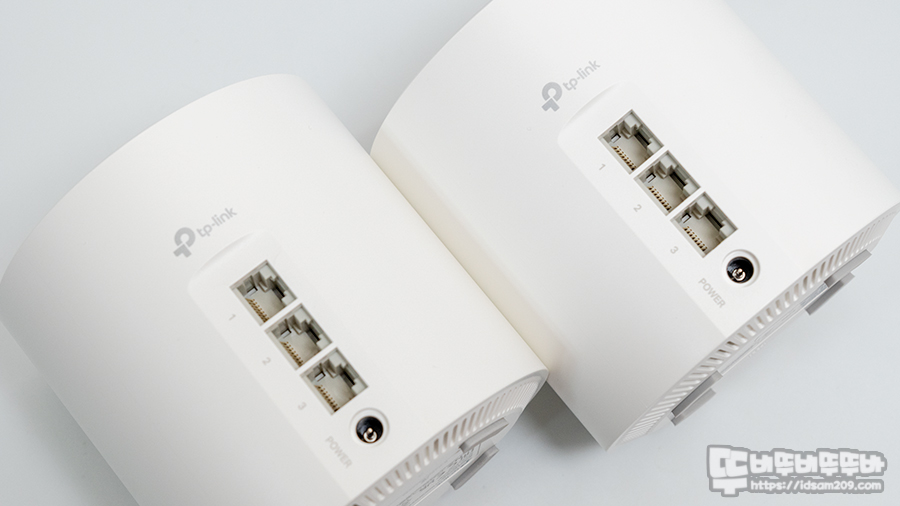 3개의 랜포트를 보시고 포트가 너무 적은 거 아니야? 하겠지만, 티피링크의 DECO 제품은 무선 네트워크에 특화된 제품이기에 LAN 포트가 많지 않은 편이지만 이번 모델은 2개에서 3개로 늘어난 게 특징이고요.