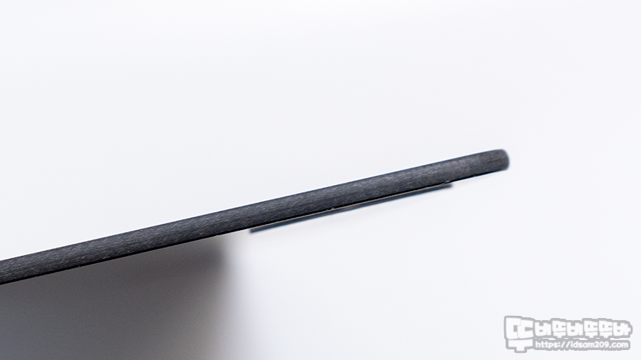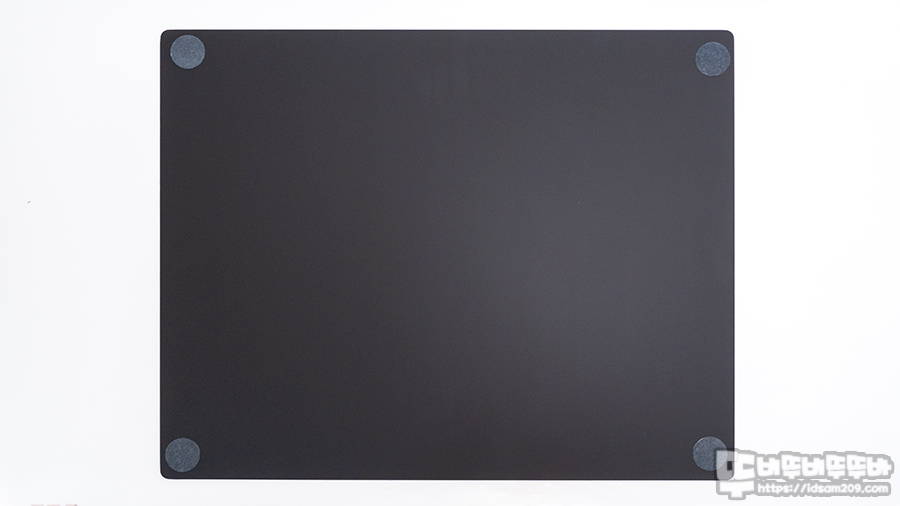 사이즈는 500 X 400 X 3.2mm이며 여기에 미끄럼 방지 피트까지 더하면 3.7mm 높이를 보여줍니다. 4mm가 안 되는 두께이기에 보통의 천 패드보다 슬림한 두께임을 확인할 수 있네요.